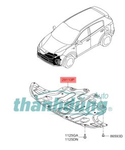 CHẮN BÙN ĐỘNG CƠ KIA SONET PREMIUM | 29110CC500 hay còn gọi là chắn bùn gầm máy. Đây là một cụm tấm ốp có kích thước lớn. Nó thường được làm từ nhựa cao cấp hoặc đôi khi là kim loại. Nó được thiết kế để bao phủ các khu vực quan trọng dưới gầm xe. Chắn bùn động cơ không chỉ là một tấm chắn đơn thuần mà còn là một phần của thiết kế kỹ thuật phức tạp. Nhờ thế tối ưu hóa hiệu suất tổng thể của xe.