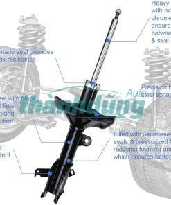 Chụp bụi giảm xóc được lắp đặt bên ngoài. Nó giúp che phủ các bộ phận nội bộ của giảm xóc, bao gồm ống piston và dầu giảm xóc. Chụp bụi giảm xóc được làm từ vật liệu linh hoạt, thường là cao su hoặc nhựa. Giúp bảo vệ một phần lớn giảm xóc khỏi việc bị ảnh hưởng bởi các tác nhân bên ngoài. Nó có tính linh hoạt để giảm thiểu sự va chạm và ma sát. Từ đó kéo dài tuổi thọ của bộ giảm xóc. Thiết kế đơn giản và dễ dàng lắp đặt, phù hợp với xe của bạn một cách hoàn hảo. Sản phẩm có kích thước chuẩn, đáng tin cậy và sẽ không gây ảnh hưởng đến hiệu suất lái xe.