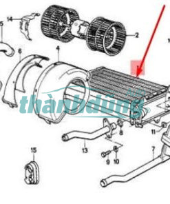 - Quạt gió thổi không khí từ ngoài vào (hoặc từ trong cabin) xuyên qua các lá tản nhiệt của Lõi sưởi.