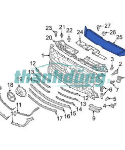 ỐP TRÊN MẶT GA LĂNG XE MAZDA 3 2018 được lắp đặt phía trên lưới tản nhiệt phía trước xe. Ốp trên ca lăng được lắp đặt sát mép capo, trên mặt cal ăng và giáp với cản trước. Ốp trên ca lăng có nhiệm vụ chịu lực tác động từ môi trường bên ngoài. Dẫn hướng luồng khí đi vào động cơ để làm mát. găn chặn các vật thể lạ xâm nhập vào khoang động cơ. Tạo điểm nhấn cho thiết kế ngoại thất của xe.